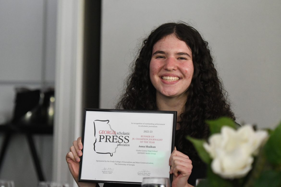 ODYSSEY Media Group members pose at the Southern Interscholastic Press Association convention in Columbia, South Carolina on March 4. Thirteen members of OMG were among the first recipients of the inaugural National Scholastic Press Association Leadership Award in Scholastic Journalism. “As a first year editor it feels really amazing to be recognized,” News Editor Cadence Schapker said. “I don’t know if I ever really considered myself a leader so being appointed to an editor and wanting to be an editor was a big step for me. But knowing that I’m doing something right and doing justice to journalism and this work that I really do love, but often struggle with, is really reassuring and motivating.” Photo from ODYSSEY archives