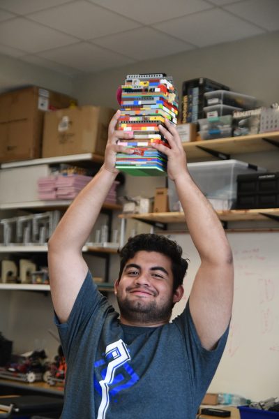 Clarke Central High School senior Daniel Castro holds up a Lego sculpture on April 15. North Oconee High School English for Speakers of Other Languages (ESOL) teacher Alicia Richwine admired Castro’s consistent effort to practice English during the two years he spent in her class. “Some students are very hesitant to try pronouncing the words or sounds that give them trouble and don’t really want to do that in front of other people,” Richwine said. “(Castro wasn’t) embarrassed by mistakes, but willing to work until he (fixed) them.” Photo by Grady Dunston