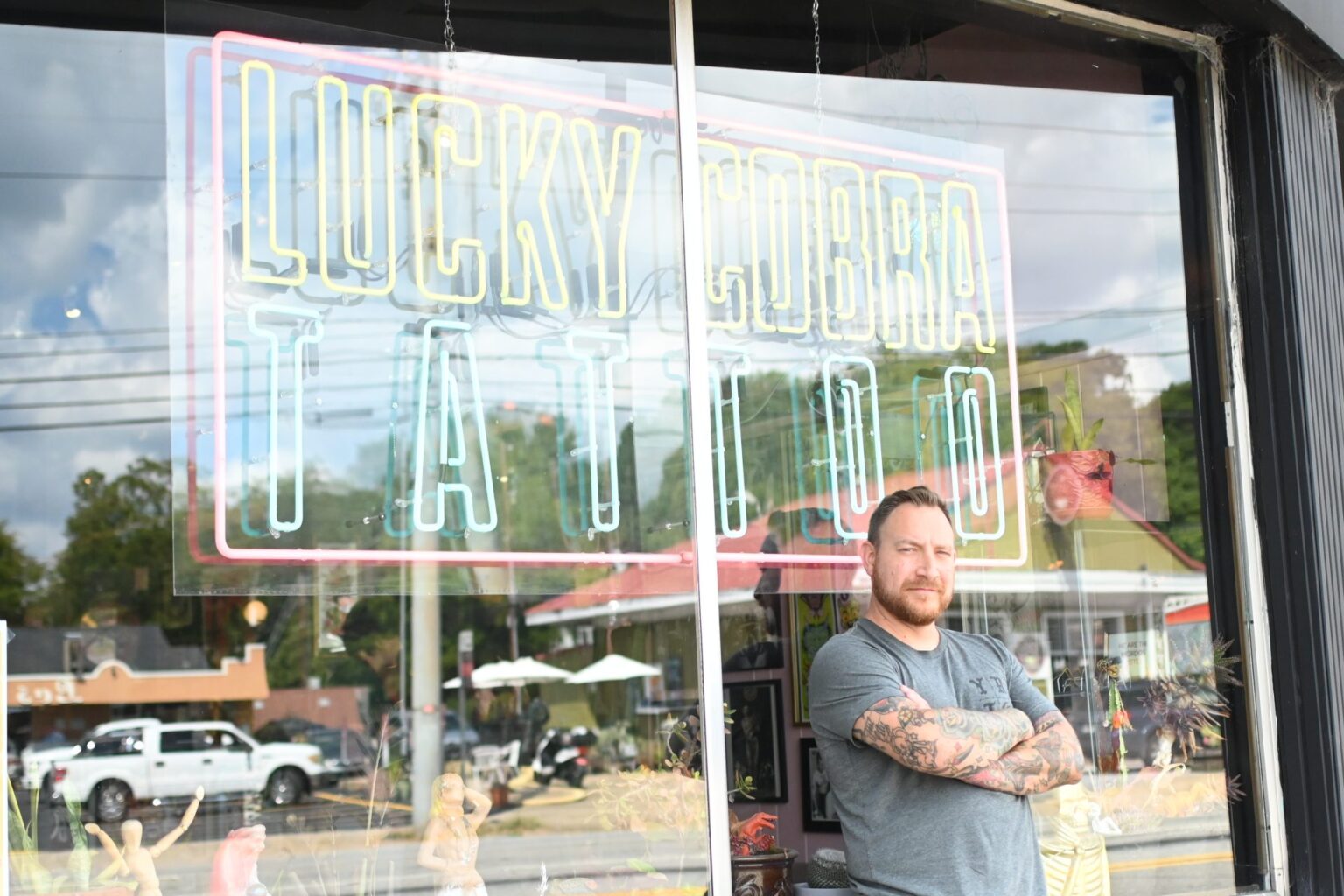 Lucky Cobra Tattoo Owner Charley Ferlito poses outside his shop on Sept. 22. When Ferlito bought the shop, previously named Mothership Tattoo, his goal was to take a more background approach while promoting the tattoos of those he cares about. “I definitely wanted to be able to take a step back from tattooing, and still have a place where I can come to work, but on my own terms,” Ferlito said. “(I wanted to) give my friends a place to work, which seems like it’s working out pretty good.” Photo by Iliana Tejada