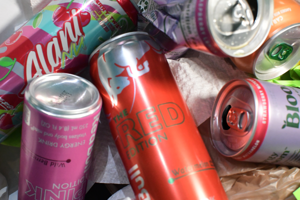 A collection of empty energy drinks in a trash can is shown. While energy drinks have helped CCHS junior Rene Rodriguez finish class projects in the past, they have also affected his sleep. “One time I took (an energy drink), I think it was about 9 or 8 p.m., and I just could not go to sleep,” Rodriguez said. “I eventually went to sleep, but I woke up maybe an hour and a half later and I had the worst headache of my life.” Photo by Grady Dunston