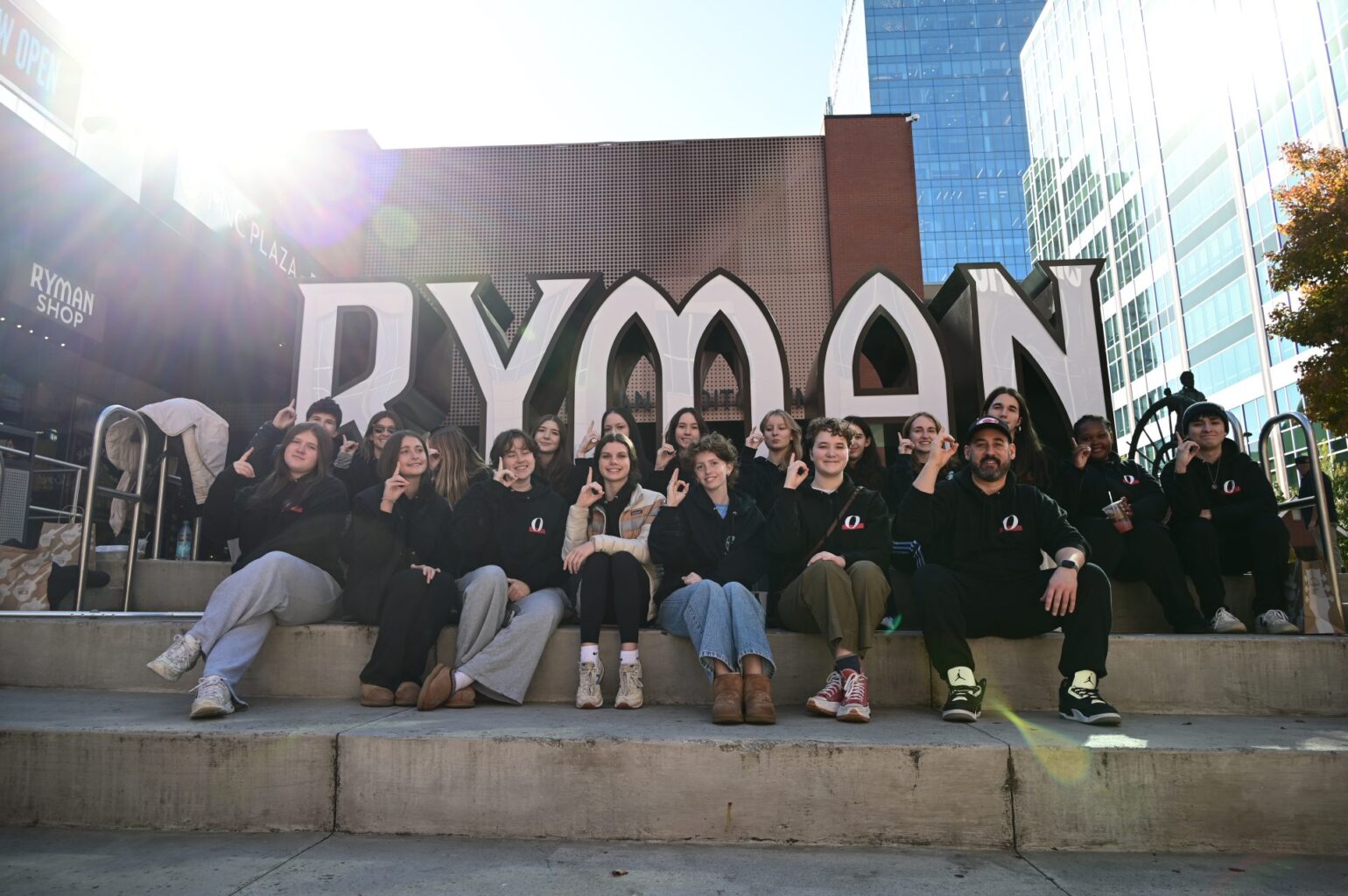 ODYSSEY Media Group and iliad Literary-Art Magazine Editorial Board members pose in front of the Ryman Theater in Nashville, Tenn. on Nov. 12. Editors explored the city upon arrival, visiting tourist attractions and participating in various other team bonding activities like shopping at the Opry Mills mall and participating in the Great Big Game Show. “The bonding activities that we do are the most valuable part of this trip,” Senior Copy Editor Cooper Jones, a senior, said. “At the end of the day, the most unique thing that you’re gonna take away from this trip is the time that we’re spending with each other.” Photo by Grady Dunston