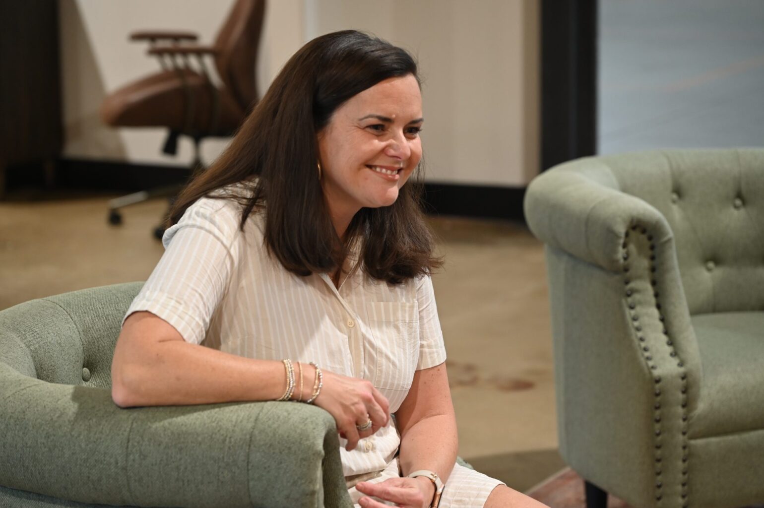 Lydia’s Place founder April Farlow sits in the organization’s office, located at 1260 Greensboro Hwy. Suite 210, Watkinsville, Ga. on Aug. 25, 2025. Farlow founded the organization in 2017 out of a want to help those aging out of the foster care system. “I wanted to serve,” Farlow said. “I found that there really wasn’t another nonprofit that was meeting this need, and so my goals were to help house the kids and help give them the chance in life that I really felt like they deserved from the very beginning, and I feel like we’re doing that now.” Photo by Maypop Wren