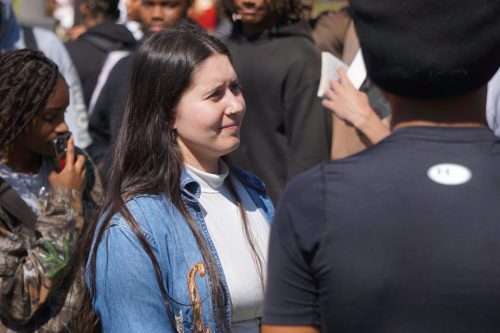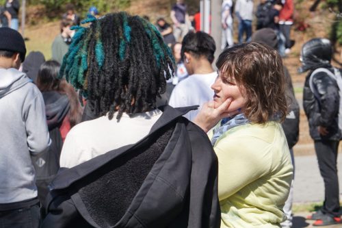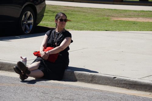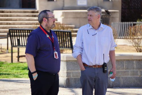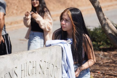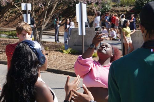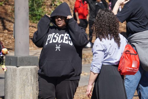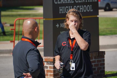 Clarke Central High School social studies and fine arts department Instructional Coach Corie Tarbet (left) and Assistant Principal Everett Nealy (right) stand in front of the CCHS flagpole on March 9. Students and staff were evacuated at approximately 1:30 p.m. due to a suspected gas leak near the greenhouse on campus, an evacuation that Nealy believes CCHS has prepared students well for future drills. “I think (this evacuation) has been very effective, everybody was cooperative. Once they heard (it was) something real, they went and did what they were supposed to do,” Nealy said. “(This) is very similar to what a fire situation would be. The only difference is we didn’t delay in the classroom because we knew it was urgent. Usually, we have the safety concern of making sure there’s not a shooter in the building who pulled the fire alarm. We knew this was real.” Photos by Peter Atchley